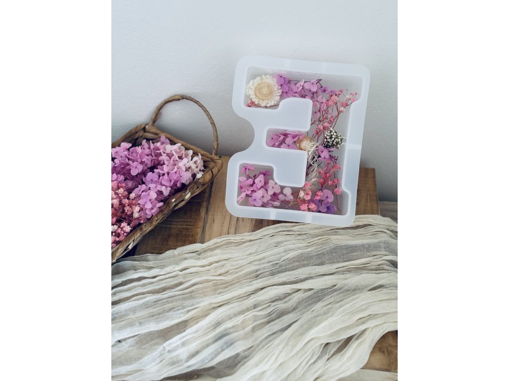 Hotový odlitek písmenka E, s barevnou dekorací dle výběru.