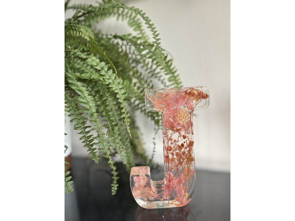Hotový odlitek písmenka J, s barevnou dekorací dle výběru.