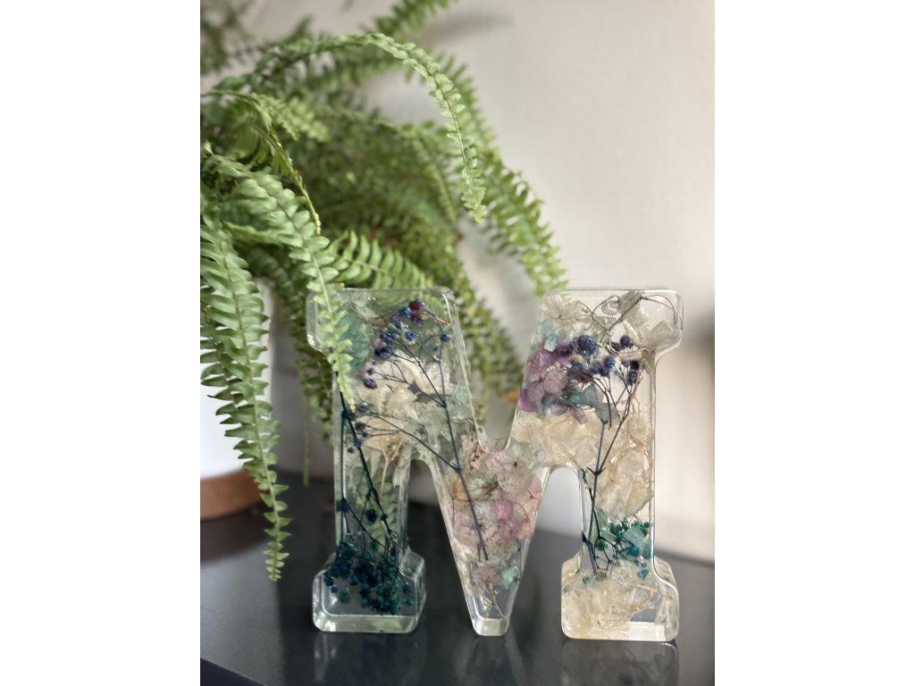 Hotový odlitek písmenka M, s barevnou dekorací dle výběru.