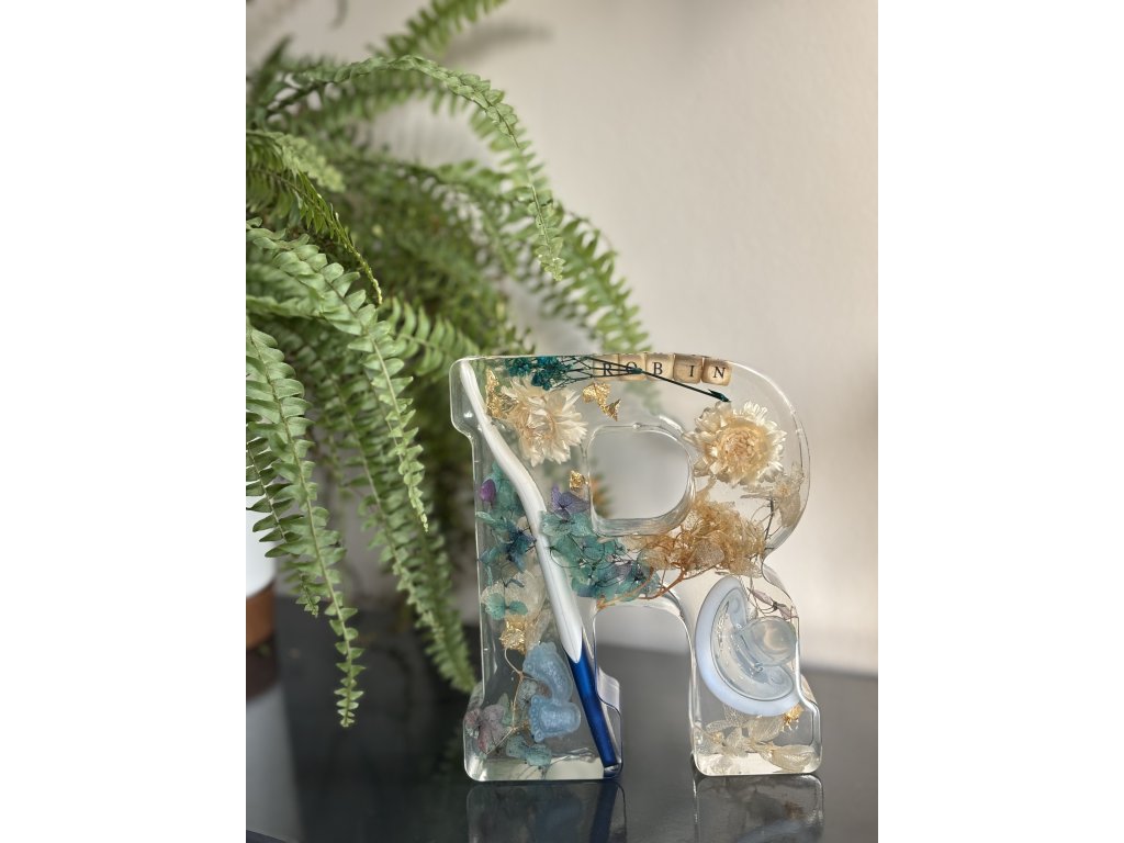 Hotový odlitek písmenka R, s barevnou dekorací dle výběru.